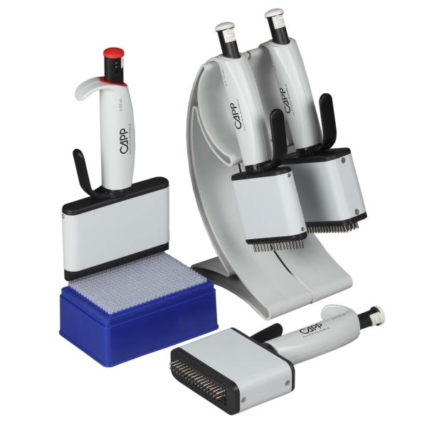 CAPPAero multikanalpipette til 384-brøndsplader er et perfekt værktøj til væskeoverførsel fra reservoir og deepwell reservoirs til 384-brøndsplader, hvilket reducerer gennemløbstiden og arbejdsbyrden. CAPP multikanalpipette giver med sin lave vægt og ergonomiske design betydelige fordele inden for PCR, micro array og MALDI spektrometriteknikker, der muliggør ensartet og nøjagtig væskeoverførsel.
