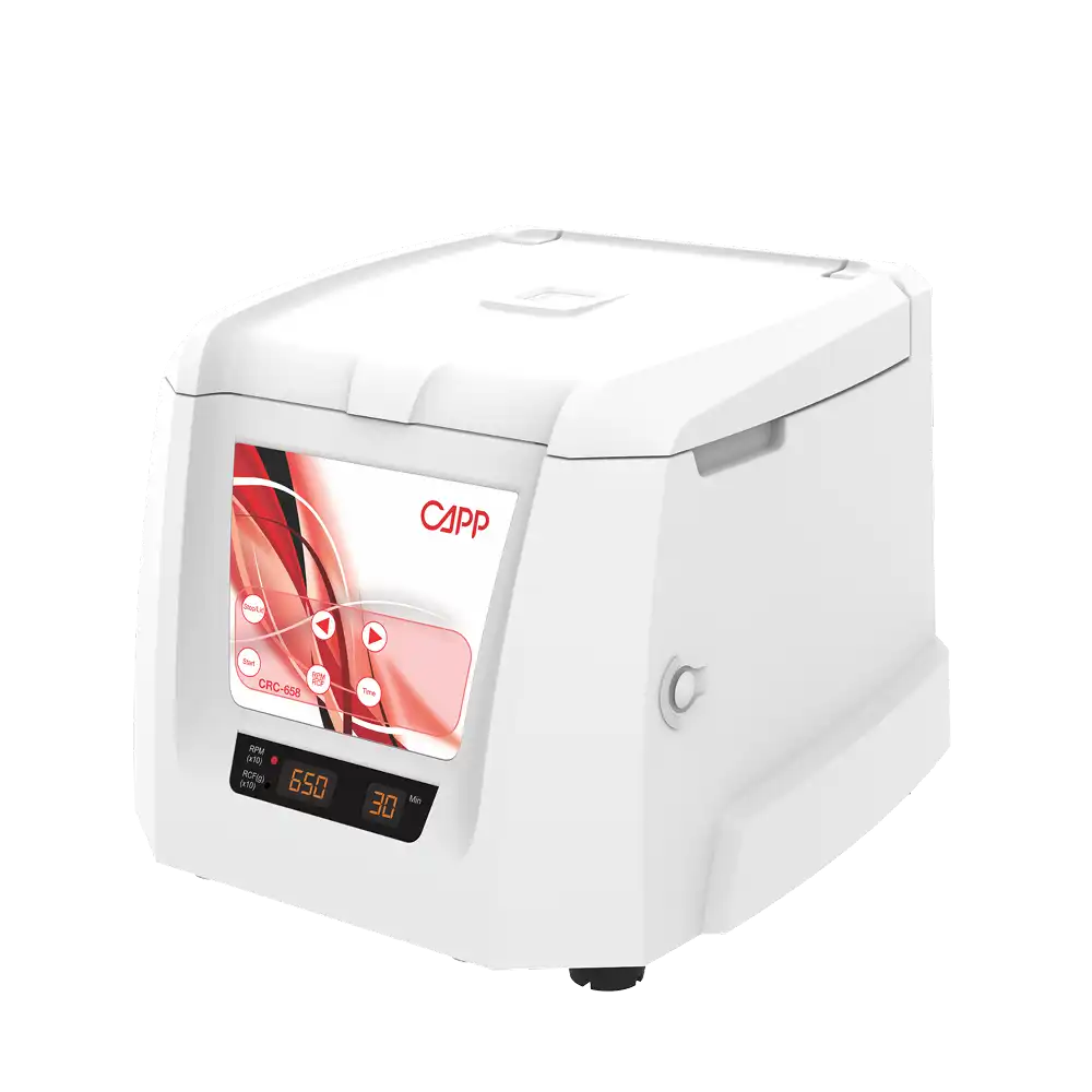 Den kliniske centrifuge er en kraftig blodseparationscentrifuge, der yder op til 6.500 rpm. Clinical centrifugeCAPPRondo har en rotorkapacitet til otte styk 15 ml rør, selvom mindre rør som 1,5 ml, 2 ml, 5 ml, 7 ml og 10 ml også kan bruges i centrifugen til blodseparation, takket være de ekstra adaptere, der følger med.